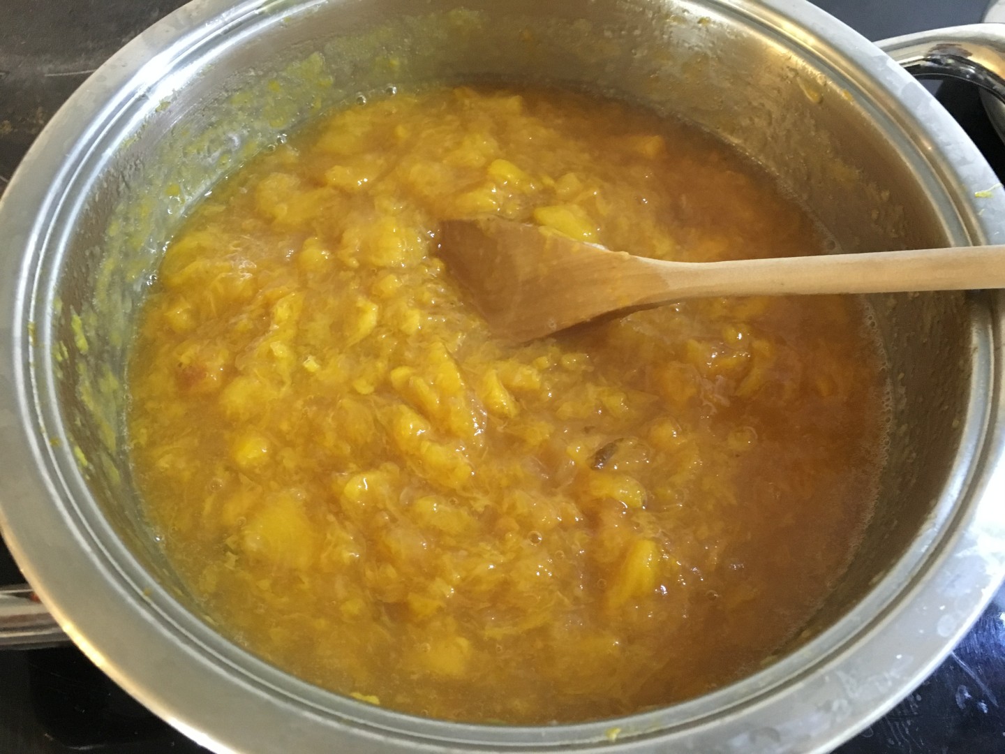 Mettiamo sul fuoco e portiamo a bollore, abbassiamo la fiamma e lasciamo sobbollire per circa due ore fin quando la frutta sarà ben sfatta. Per capire se la confettura è pronta possiamo fare la prova del piatto: ne mettiamo un cucchiaio su un piatto, se scende lentamente vuol dire che è pronta, se invece è troppo liquida continuiamo a far bollire.