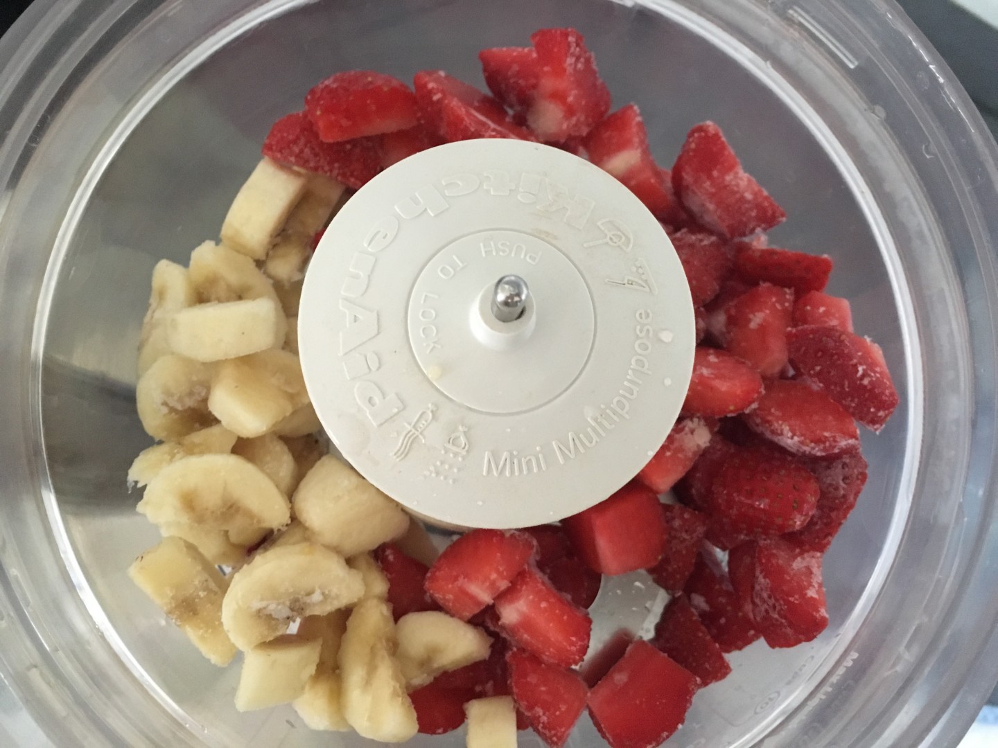 Una volta che la frutta sarà congelata basterà inserirla in un mixer e, con molta pazienza, iniziare a frullare aggiungendo se serve qualche cucchiaio di latte o acqua! Inizialmente il composto sarà granuloso, aprite il contenitore del mixer, mescolare e ripartite, pian piano vedrete formarsi un cremoso gelato alla frutta!