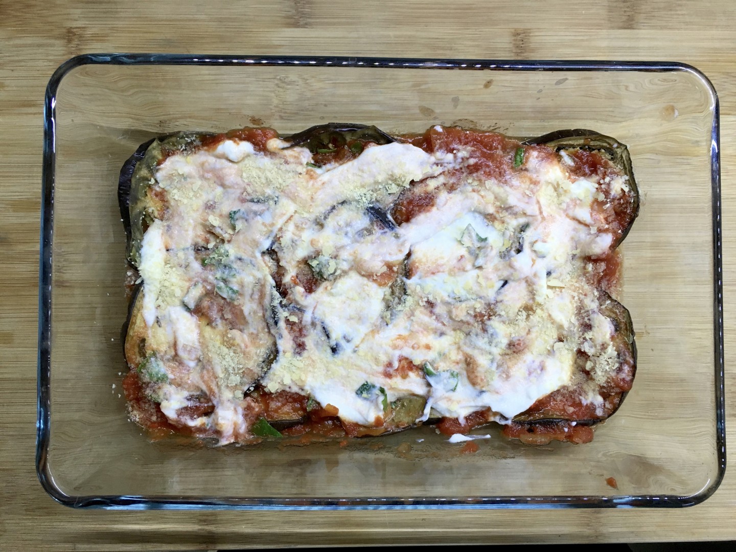 Per gli amanti di questo piatto, ho una versione leggera e veloce! Melanzane arrostite invece che fritte, ricotta al posto della mozzarella e lievito alimentare al posto del parmigiano!