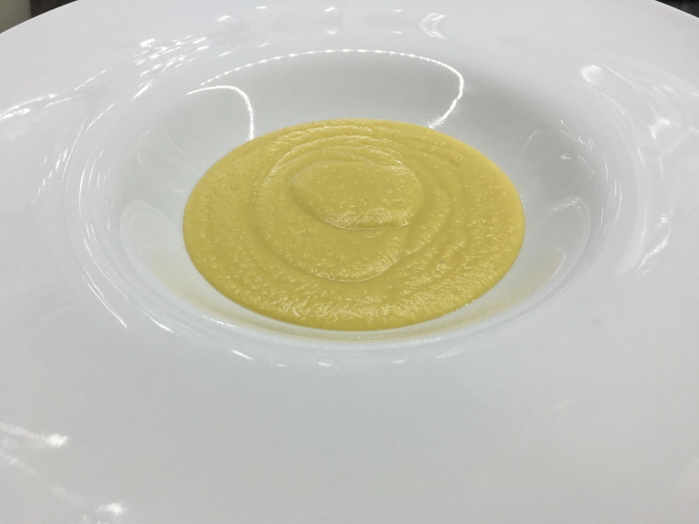 A parte prepariamo la crema di ceci semplicemente frullando i ceci con 1 cucchiaio di olio e acqua q.b. Aggiustiamo di sale e pepe e disponiamo sul fondo del piatto.