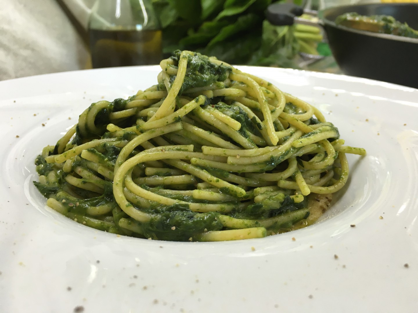 Buttiamo la pasta e quando sarà quasi cotta la risaltiamo in padella con le cime di rapa terminando la cottura aggiungendo acqua man mano. Cerchiamo di formare un piccolo nido e sistemiamolo sulla crema di ceci alla base del piatto. Siamo pronti!